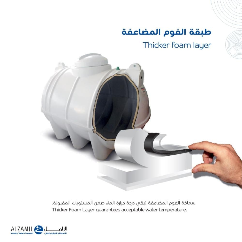 · الخبرات المتراكمة لشركة الزامل التي تتعدى الثلاثين عاماً، ضمنت لهذا الخزان جودته العالية، فقد اعتمد المصنع على وسائل تكنولوجية متطورة خلال عملية الإنتاج.