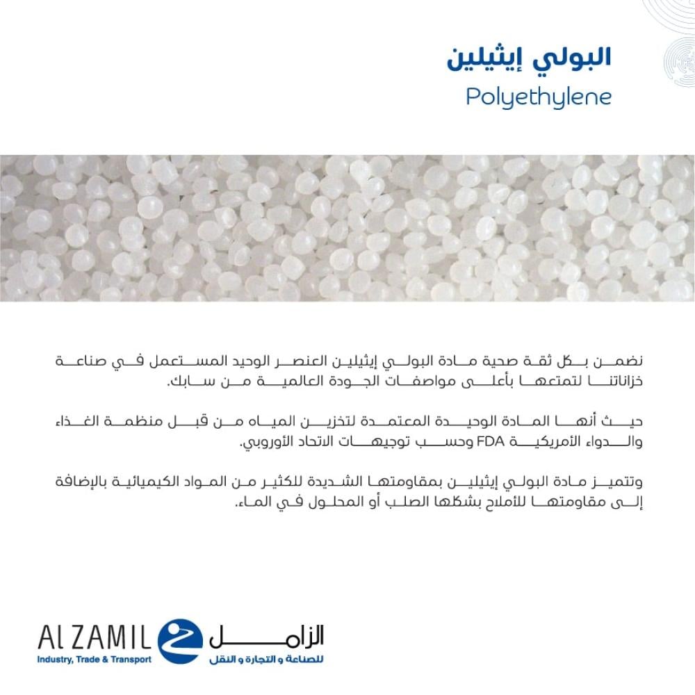 ·يتميز خزان الزامل المصنوع من البولي إيثيلين بمقاومة العديد من المواد الكيميائية والأملاح..