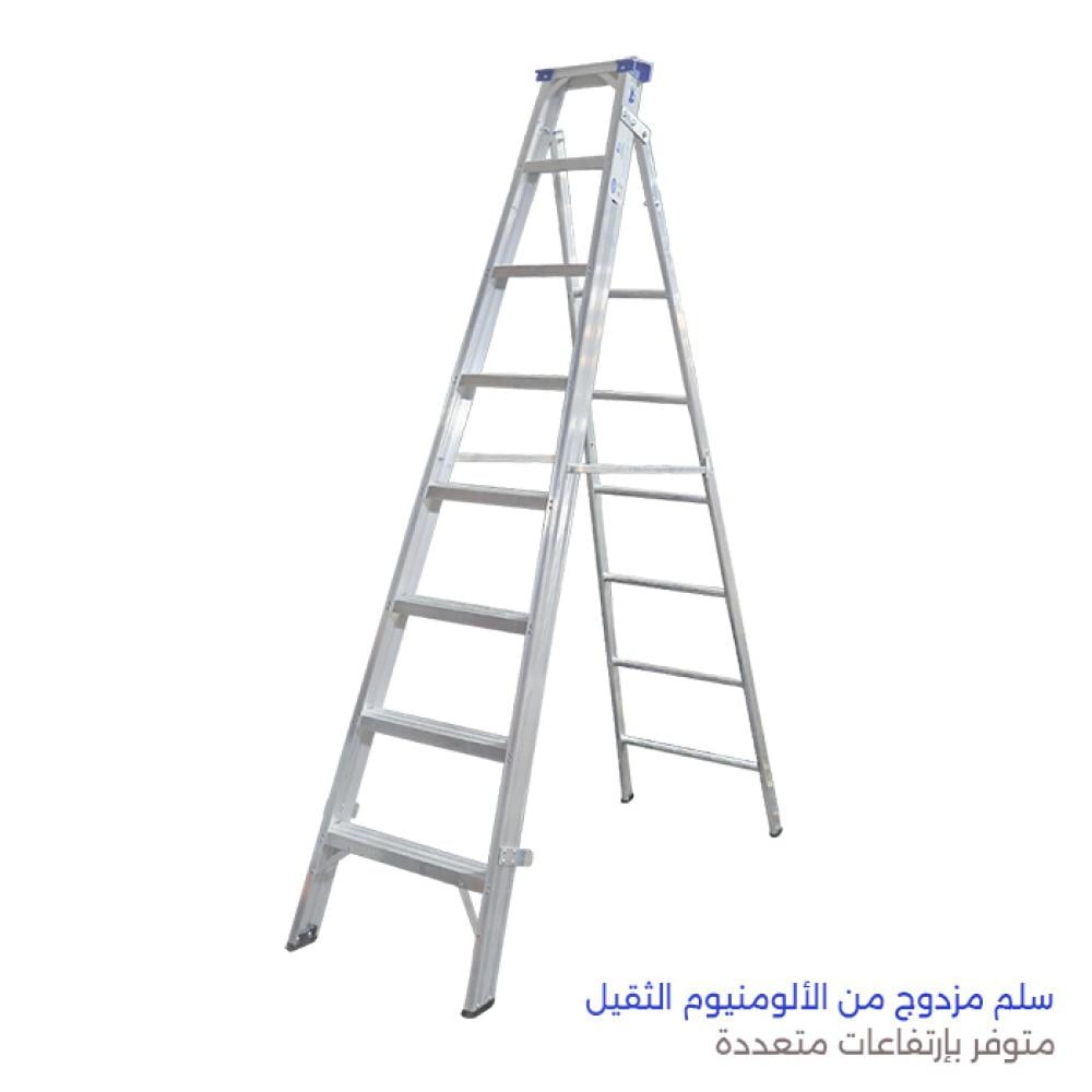 سلم مزدوج مصنوع من الألمنيوم الثقيل يتميز بالقوة والمتانة العالية ليتحمل الأوزان الثقيلة، مصمم من سلمين متصلين حيث يكون السلم الرئيسي مرتفعاً بينما يوفر السلم الثانوي دعماً قوياً من الأسفل ليعزز من الاستقرار والآمان عند الوصول إلى ارتفاعات عالية، احصل عليه الآن